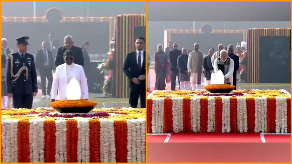 PM Modi took to X (formerly Twitter) to commemorate the birth anniversary of the esteemed Atal Bihari Vajpayee. In his heartfelt post, he expressed his profound respect on behalf of the entire nation. Vajpayee ji’s unwavering commitment to nation-building and his selfless service to Mother India continue to inspire us, even in his eternal presence. Notably, President Droupadi Murmu and Vice President Jagdeep Dhankhar were also in attendance at the memorial.