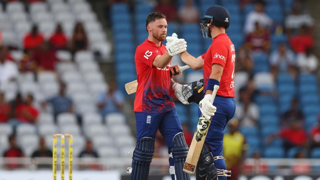 England continued to dominate the West Indies bowlers, with Will Jacks scoring 24 runs off just nine deliveries and Liam Livingstone smashing an unbeaten 54 runs off 21 balls, which included four sixes and four boundaries.