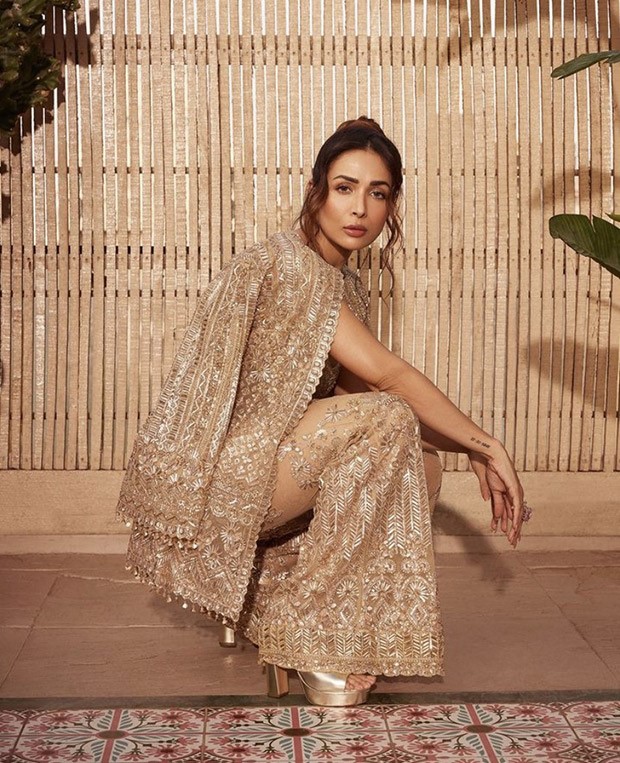 Malaika Arora is a stunning diva dressed in a gold three-piece set.