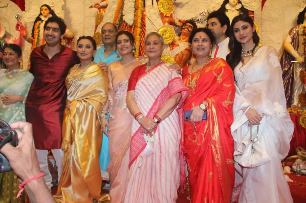 Rani Mukerji was a prominent figure in Pujo Pandal, known for her relationships with Kajol, Jaya Bachchan, and Jackie.